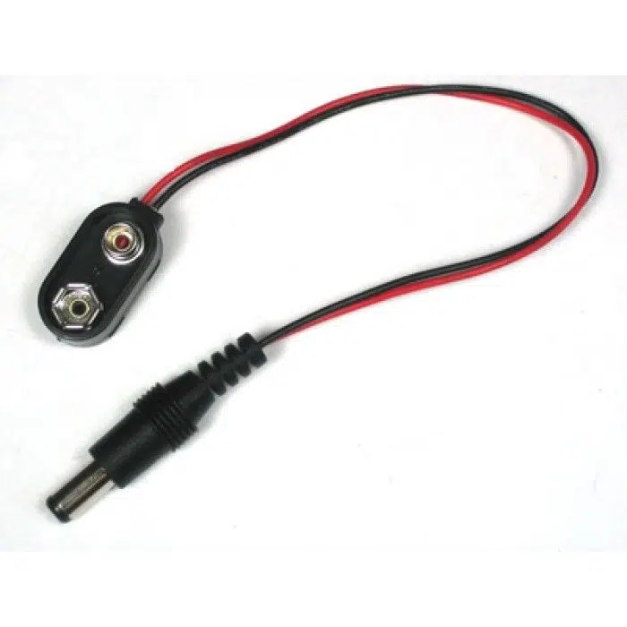 Arduino UNO - MEGA gibi modeller ile birebir uyumludur. 9V pillerin Arduino beslemesi için kullanılır. Doğrudan Arduino modelleri üzerinde bulunan power jack ile uyumlu erkek jack girişlidir. Bu sayede Arduino kartlarının beslemesi 9v pil ile doğrudan yapılabilmektedir.