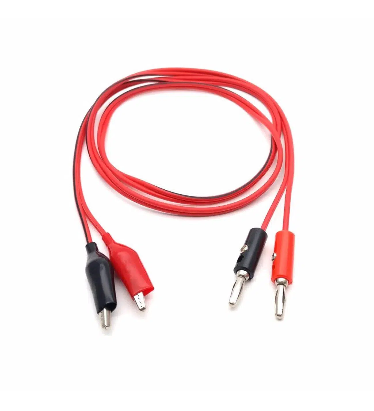 Bu kablo seti, laboratuvar tipi güç kaynaklarıyla devreleri kolayca beslemek ve test yapmak için tasarlanmıştır. Bir ucu banana (muz) fiş, diğer ucu ise krokodil (timsah) klips ile donatılmıştır. Farklı cihazlara geçici bağlantı kurmak için idealdir.