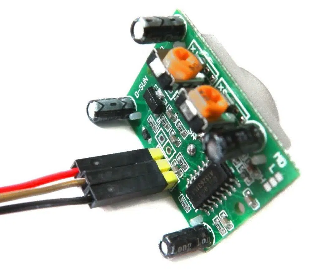 Bu PIR Sensör modelinde gecikme zamanı ve menzil ayarlanabilir. Sensörün ölçüm menzili maksimum 7 metredir. Üzerindeki potansiyometreyi saat yönünde çevirerek menzil arttırılır (Max 7m), saat yönünün tersine ise merzil düşürülür (Min 3m). Diğer potansiyometre ile sensör algıladıktan sonra ne kadar süre(gecikme zamanı) yüksek çıkış vereceği ayarlanır.