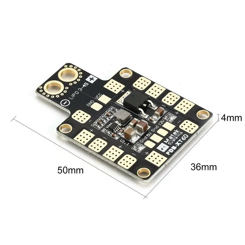 BuGüç Dağıtım Panosu, 36x50mm, 4 katmanlı birPCB'de mümkün olan en yüksek performans ve güvenilirliği sağlayacak şekilde tasarlanmıştır.LiPo pillerekolay bağlantı için birXT60ile birlikte gelir.
