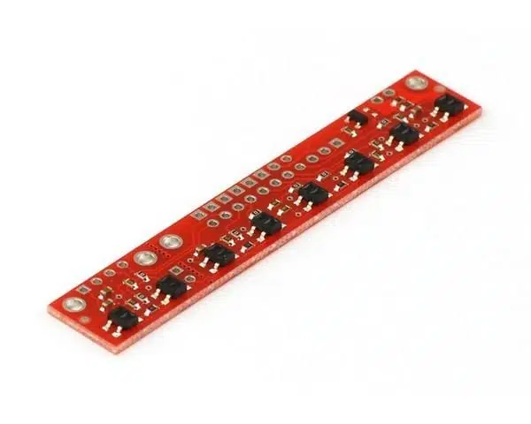 Çizgi izleyen robotların yapımında en çok kullanılan sensör tipi olan QTR Serisinin Dijital çıkış verebilen modeli QTR-8RC modelidir.