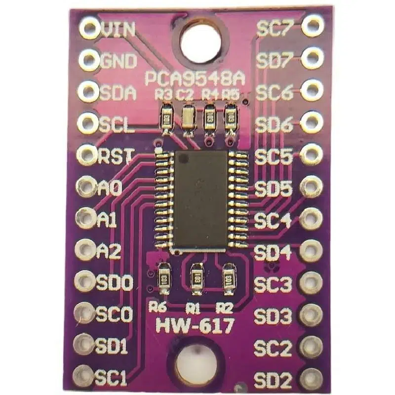 TCA9548A I2C haberleşme portunun 8 kanala çıkartılması işlevi için kullanılır. Uygulamanızda çok fazla aynı adrese sahip IIC haberleşmesi yapan entegre/sensör kullanmanız gerekir. Normalde I2C adresi aynı olan 2 cihazı aynı I2C hattı üzerinde bir arada kullanmanız mümkün değildir. Bu modül aynı anda 8 adede kadar olan ve aynı adresi kullanan cihazların kullanılmasına imkân verir. Ve hepsi ile kolayca haberleşme imkanı elde edilir.